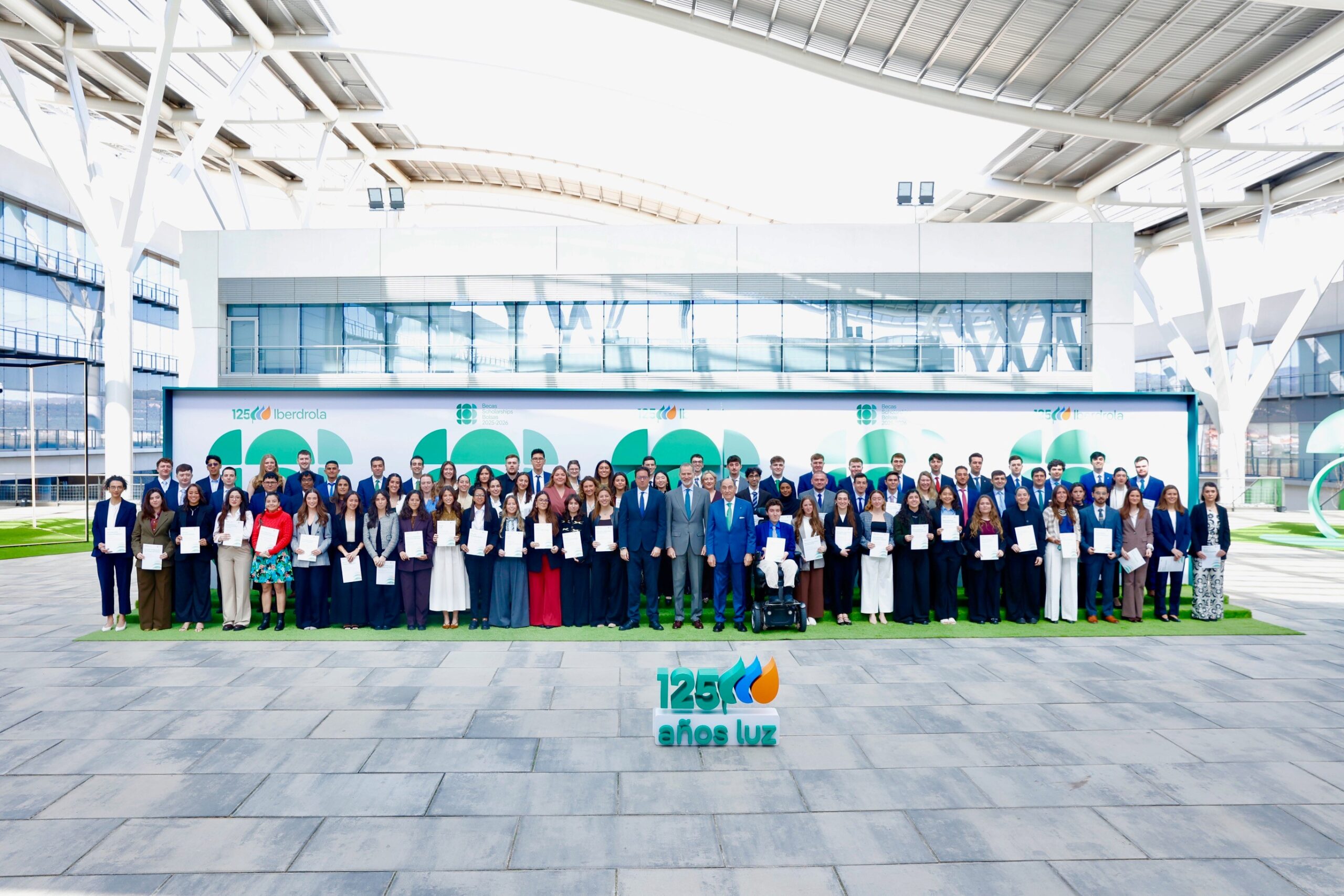 Su Majestad el Rey ha presidido esta mañana, acompañado por el presidente de Iberdrola, Ignacio Galán, y el ministro para la Transformación Digital y de la Función Pública, Óscar López Águeda, el acto de entrega de las Becas 2025-2026 de la compañía